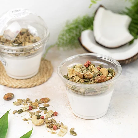 Кокосовый йогурт с безглютеновой гранолой (с грецким орехом и шелковицей)