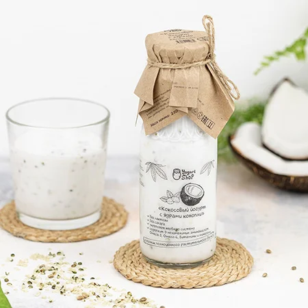 Кокосовый йогурт с безглютеновой гранолой (с клубникой и ядрами конопли)